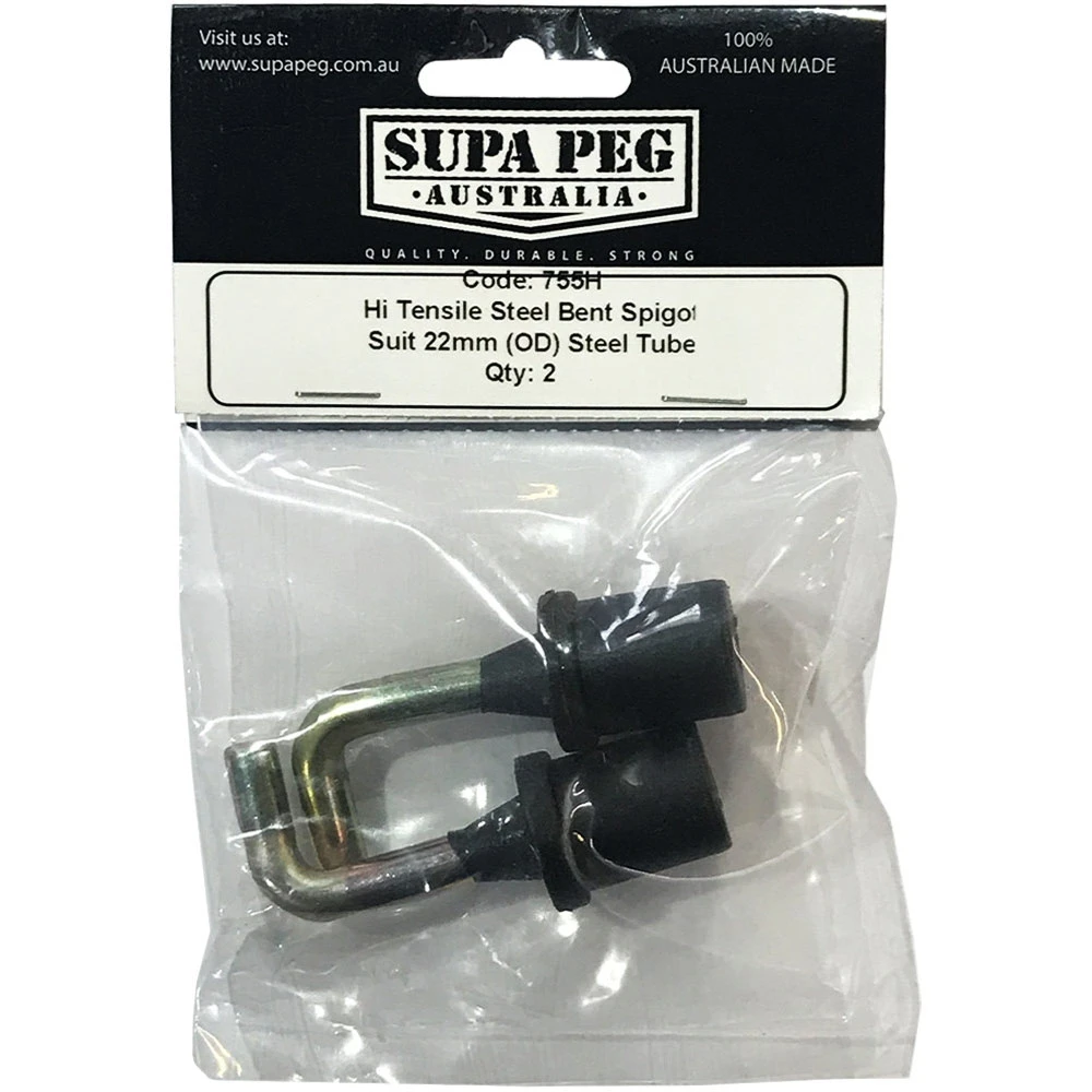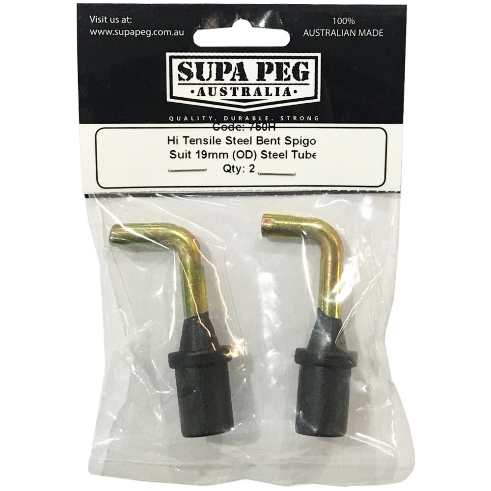 Bent spigots are suited for camper trailers and caravans where there is a locator that will accommodate the bent tip to create a roof rail or ridge pole to create an awning or extended shelter.