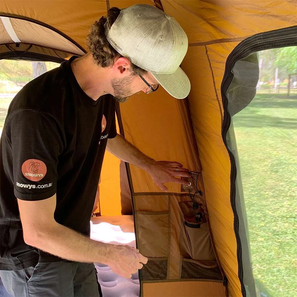 You can set up the inner in just 3 minutes no matter how frazzled you are, as the Instant Northstar has an instant-up frame – so it’s ready to go straight out of the bag. Then you can just chuck on the fly, peg it out and you’re good to go. For illumination at the flick of a switch, the interior has silicone flexible strip LED lighting which is super convenient. Bonding with the family is important, but you still need some privacy to keep your sanity. This tent features 3 rooms separated by zippered mesh and privacy doors – so you can spend time together and have some personal space.