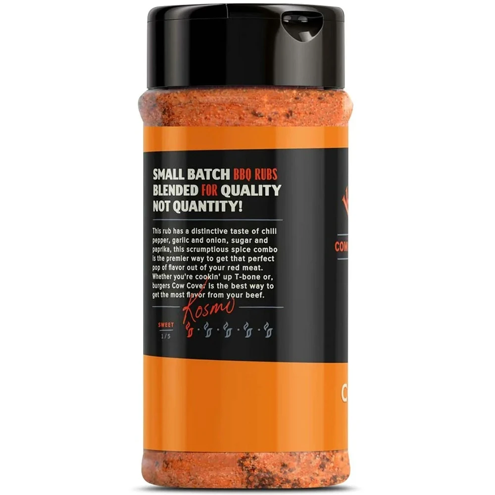 The Cow Cover Rub by Kosmos Q delivers a rich, robust pop of red to every savoury craver’s plate.