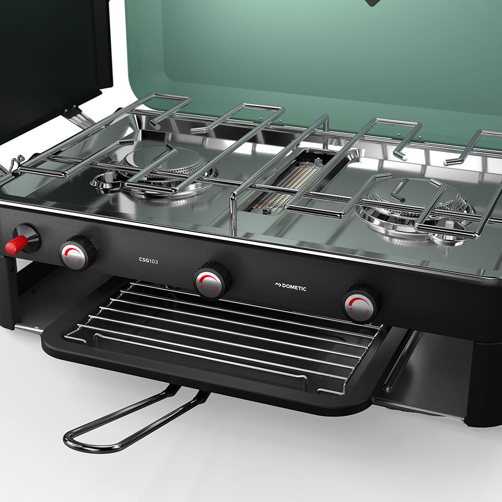 The Portable Gas Stove with Grill CSG103 by Dometic is crafted for those creature-comfortable campsite feeds.