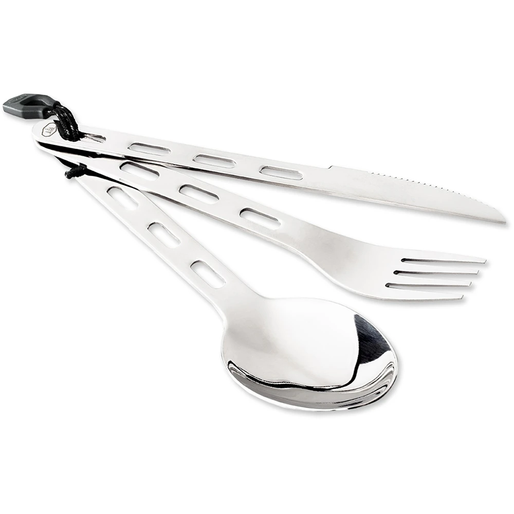 If plastic and other material utensils are too flimsy for your rugged adventures, then the super resilient Glacier Stainless Ring Cutlery Set from GSI Outdoors will fit the bill.