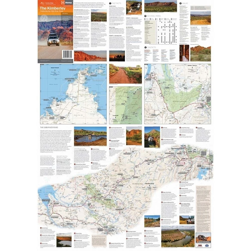 When you’re travelling this far from the settled areas, you need more than just a GPS. You need an overview of the area – you need to know how far it is to the next junction, town, or campsite. This map offers excellent information, like GPS co-ordinates for towns and localities. The legendary Gibb River Road is brought into focus on the reverse side with inset maps and plenty of extra information to enrich your trip. National Park information is included on the map with contact details for planning and use while on the track.