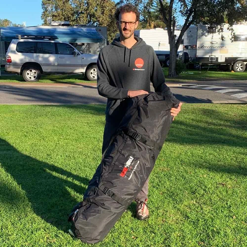 If you’re after a roomy tent that won’t weight down the back of your trailer, the Black Wolf Turbo Lite 300 is the tent that will have your back.